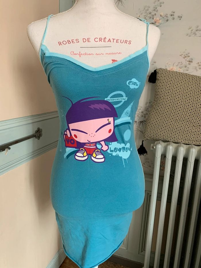 Pyjama / chemise de nuit / nuisette / robe de nuit Pour enfant / ado / femme Taille XS Bon état : pas de trous, pas de taches mais quelques bouloches et des marques aux bretelles (je la portais en faisant des noeuds aux bretelles)