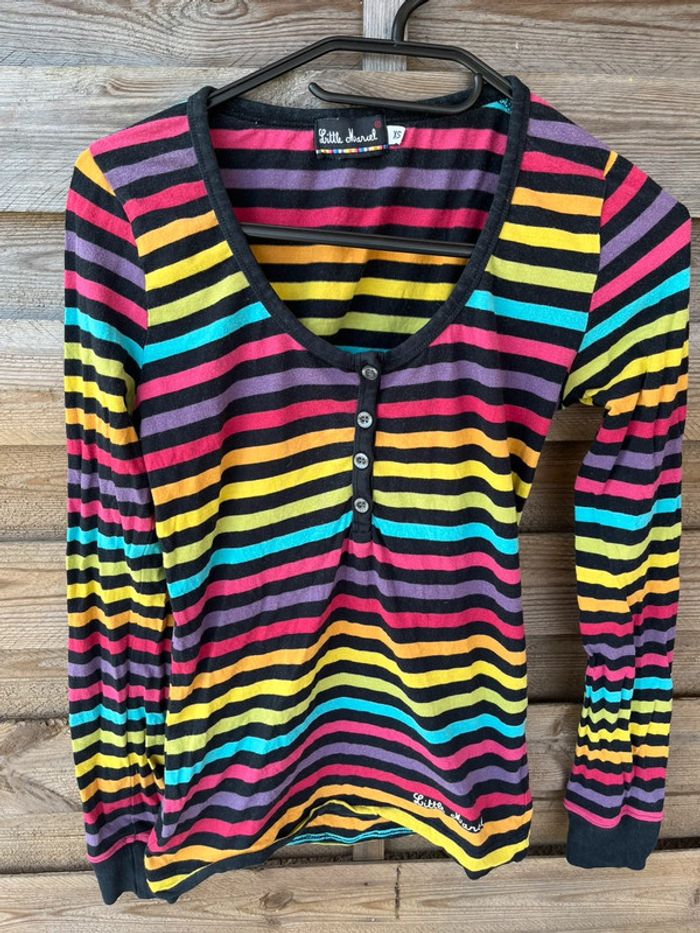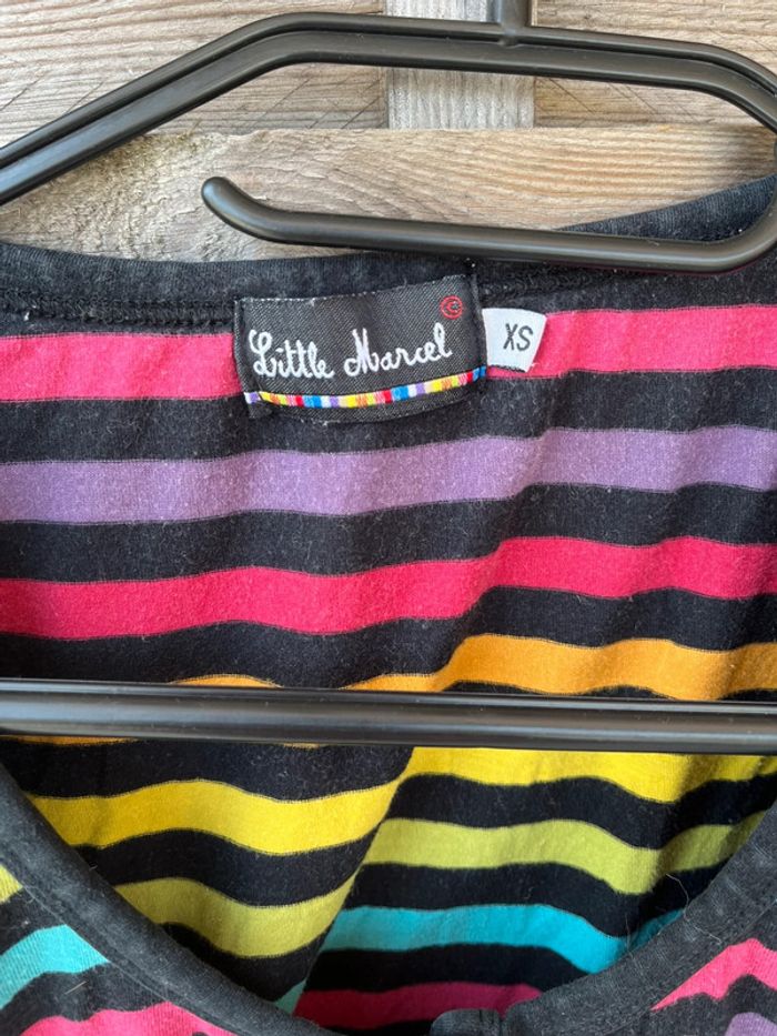 Tee shirt noir rayures multicolores Taille XS femme Manches longues Bon état