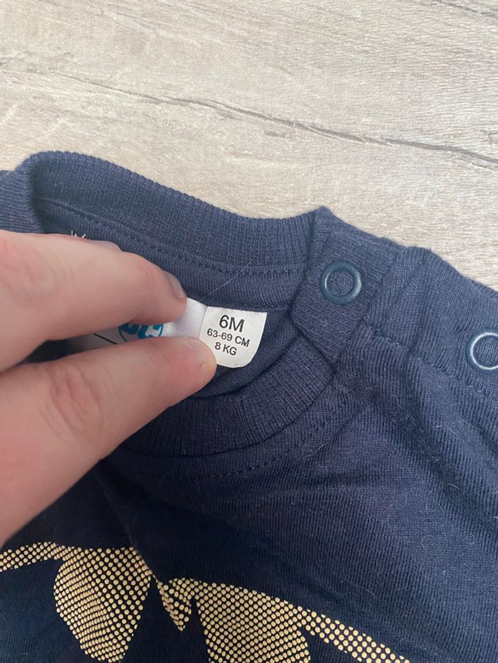 T-shirt superman bleu marine, en très bon état, Kiabi - 6 mois (63-69cm) Dressing en 6 mois : #loll6m Remise sur lot jusqu'à -40% ! #haut #tshirt #bleu #marine #batman #kiabi #garçon #loll33