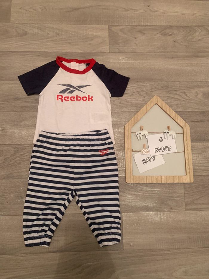 Ensemble body et pantalon, en excellent état, porté une fois, Reebok - 6 mois Dressing en 6 mois : #loll6m Remise sur lot jusqu'à -40% ! #ensemble #body #pantalon #raye #reebok #garçon #loll33