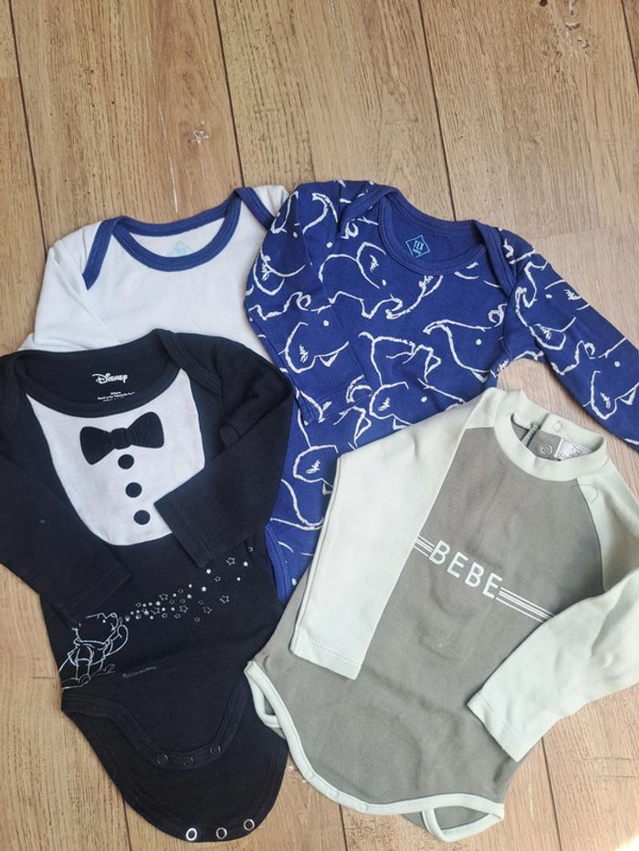 lot de 4 bodies manches longues 12 mois multi marques : Tex, Disney, Colin et Coline le bodie Winnie l'ourson a les dessins un peu craquelés N'hésitez pas à visiter mon dressing, la réduction par lot est activée. #Azvane_garçon12mois