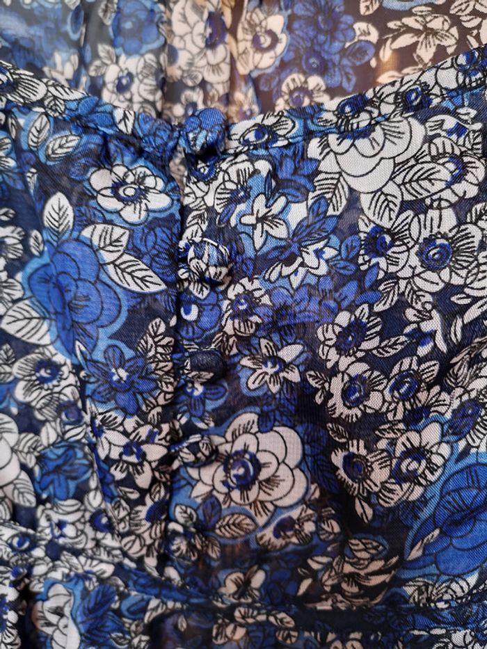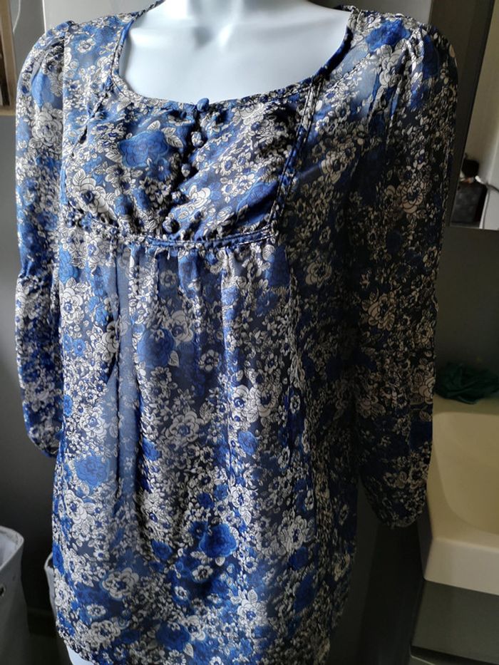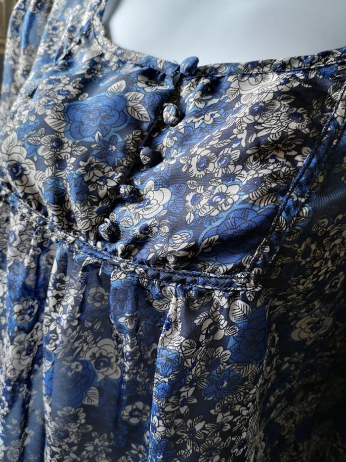 Très jolie blouse bleue à fleurs