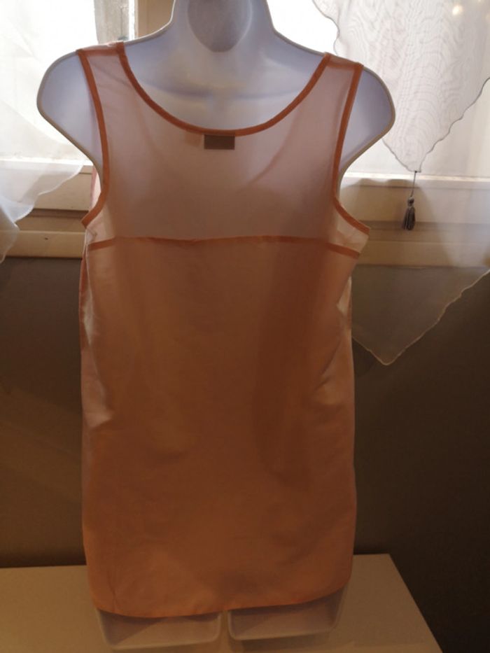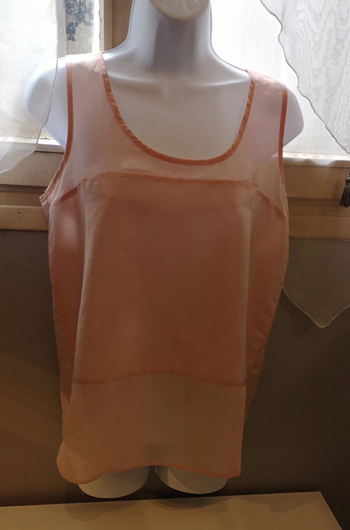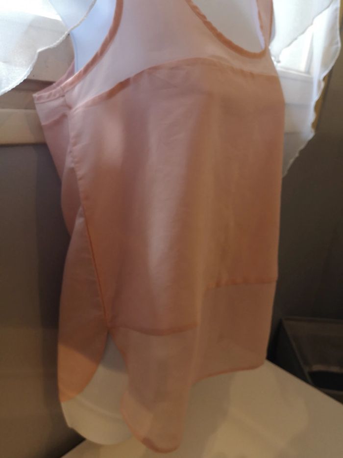 Débardeur rose poudré avec très bel effet de transparence, très agréable à porter