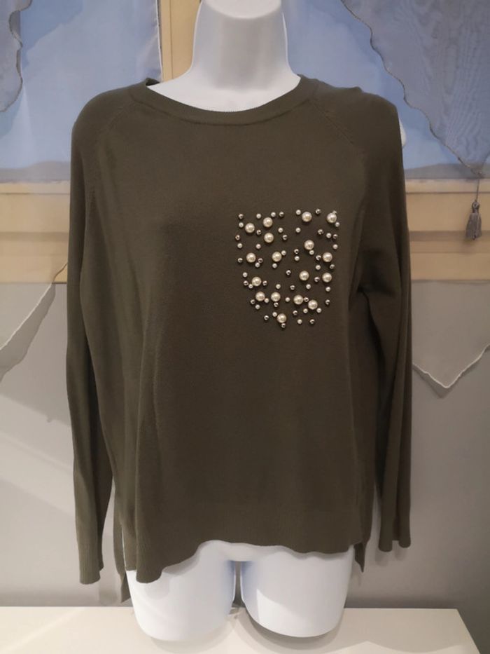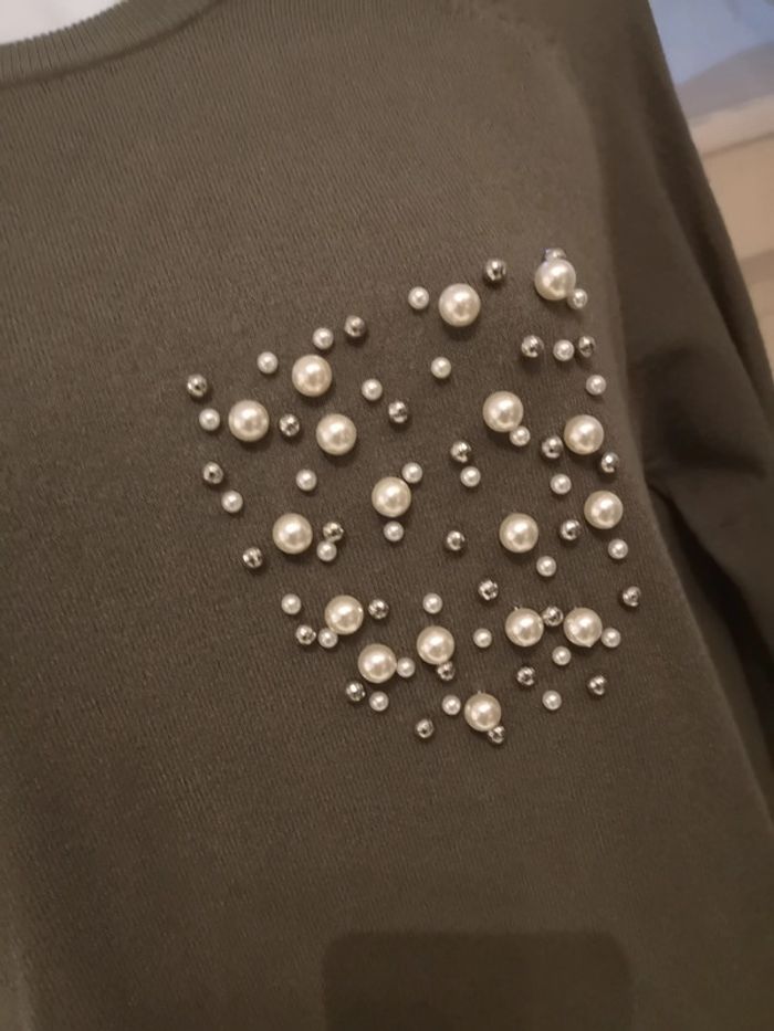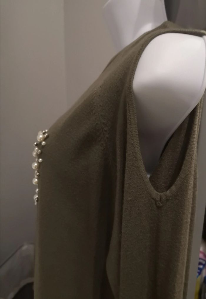 Pull kaki épaules dénudées perles S /M - photo numéro 7