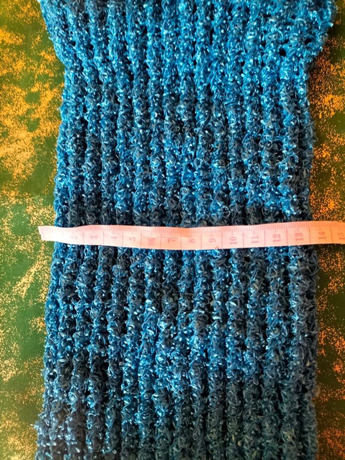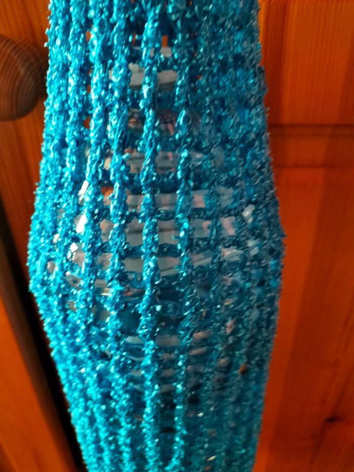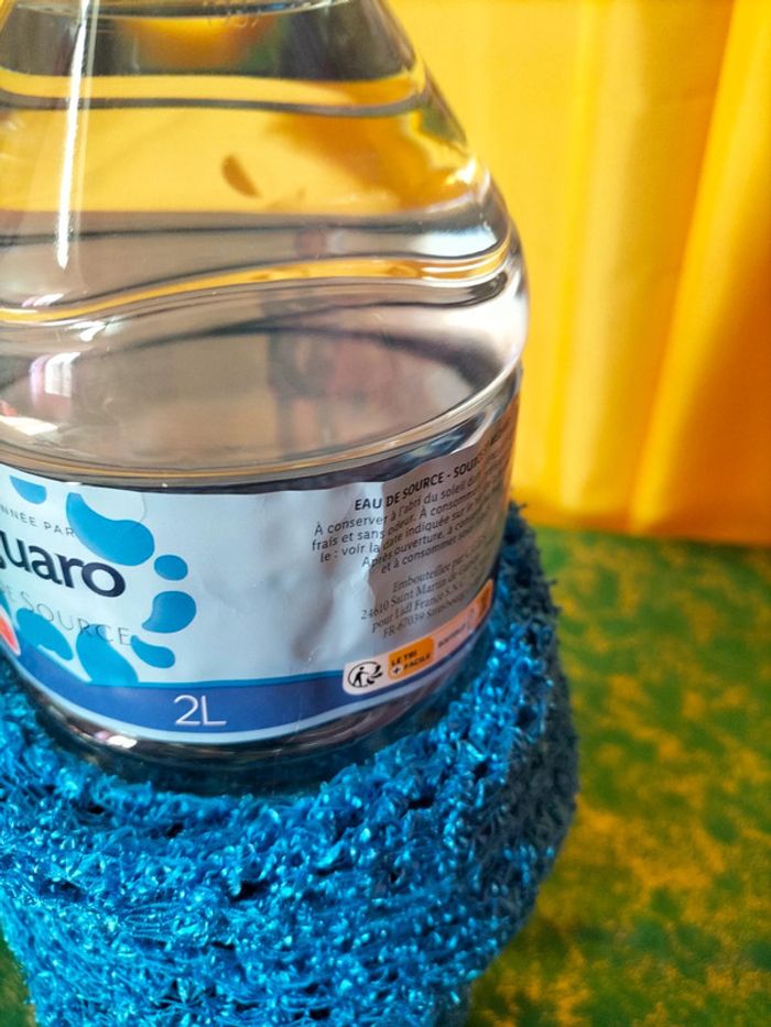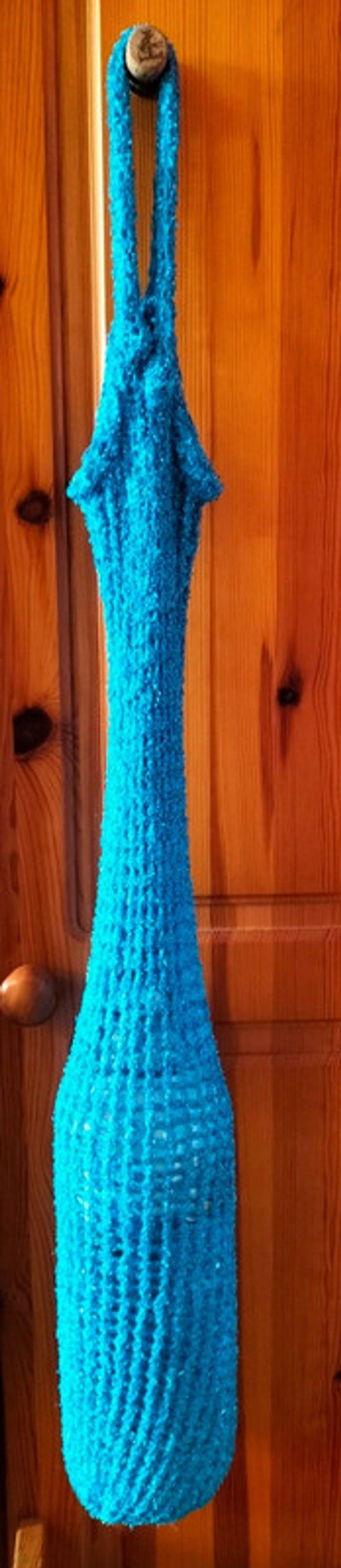 Sac artisanal extensible, comme démontré sur la photo. On mettre une bouteille d'eau de 2 L et il reste encore de la place. Pratique pour les petites commissions à l'épicerie du coin, pour acheter par exemple 2 kg de pommes ou une bouteille. Environ 36 cm ×13 cm et 21 de diamètre pour l'ouverture.