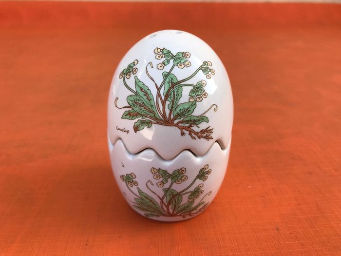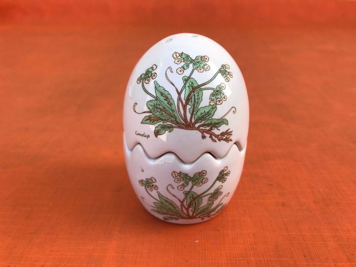Salière / Poivrière  Céramique forme Oeuf  Décor Couslip (primevère) - photo numéro 1