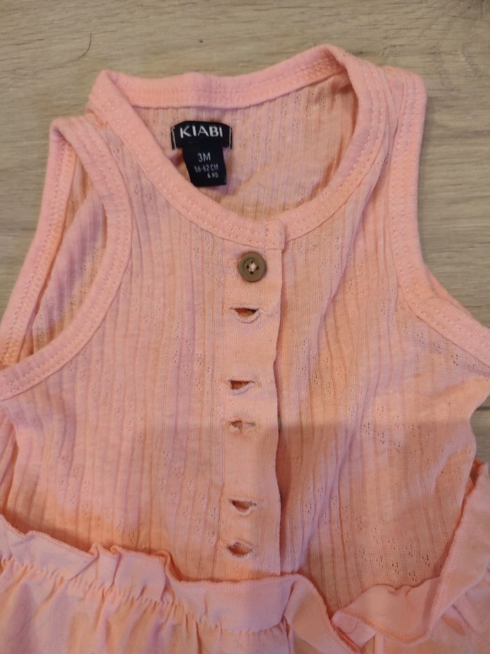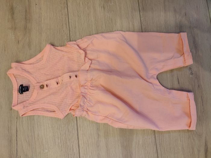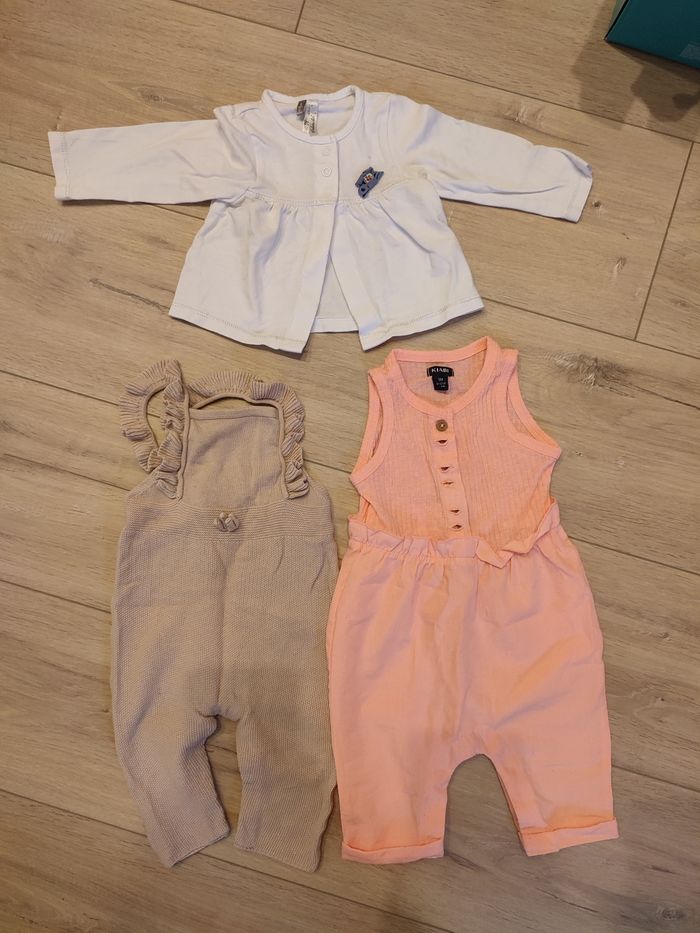 Lot de deux combinaisons fille Kiabi + veste en coton orchestra 3 mois La beige est en maille légère La rose a des pressions a l'entrejambe