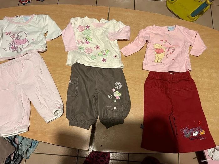 Lot de vêtements taille 3 mois - 1 ensemble robe beige + maillot manches longue blanc de marque grain de blé - 1 robe de rose marque alphabet - 1 ensemble 2 pièces rose à carreau robe + short - 1 Barboteuse + chapeau de marque Kiabi - 1 robe + pantalon legging Disney ⚠️état satisfaisant et taché - 2 ensemble 2 pièces: UN disney Winnie l’ourson maillot manches longue + pantalon épais - Et UN motif avec FÉE Un bicolore ( 1 t-shirt manche longue blan(c/rose et un pantalon marron ) - 1 pantalon Disney aristocats - 1 t-shirt manche longue rose Disney Winnie l’ourson - 1 barboteuse a carreau grain de blé - 1 petit manteau Disney Winnie rose Vous trouverez d’autre vêtements dans mon dressing voir plus n ’hésitez pas à vous abonner ,faire un tour dans mon dressing et à me demander je n’ai pas tous mis et faire des #lots prix réduit, je VENDS et je DONNe des vêtements #adultes , #maternités , #grossesse #allaitement #enfants . #bébé #prematuré #chaussures #accessoires #jouets etc etc
