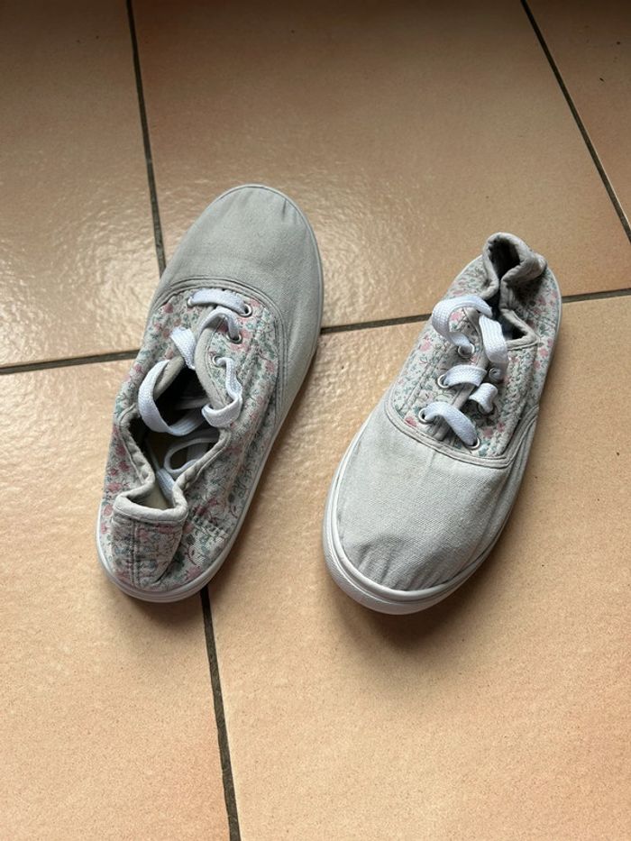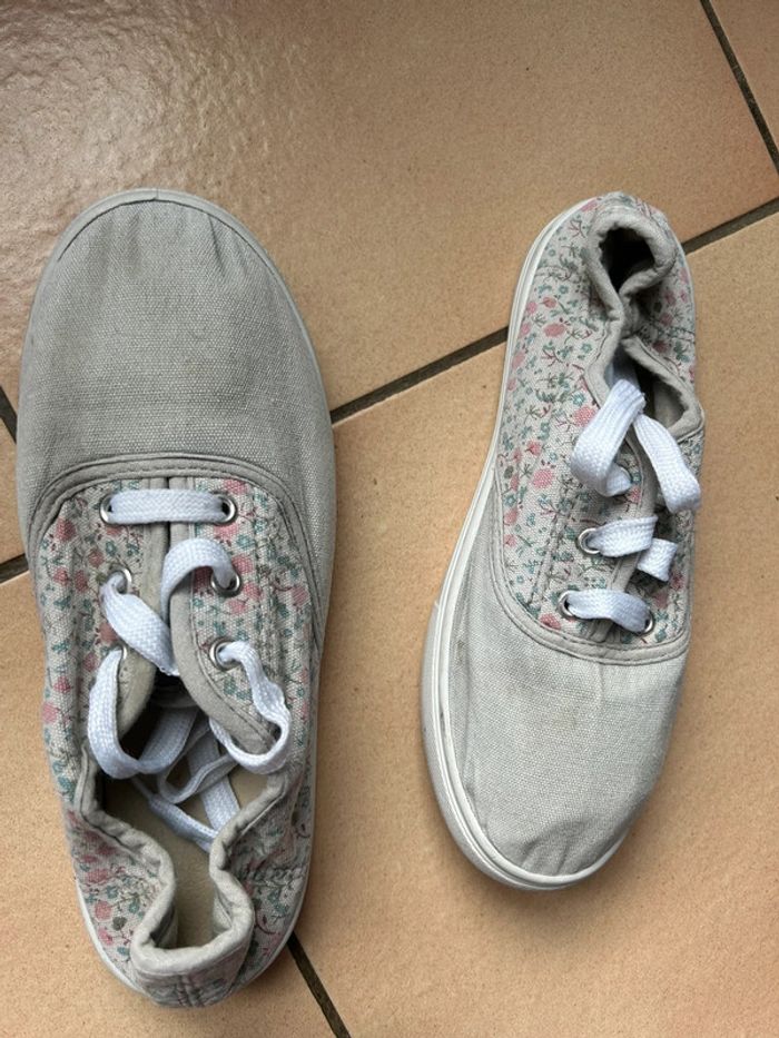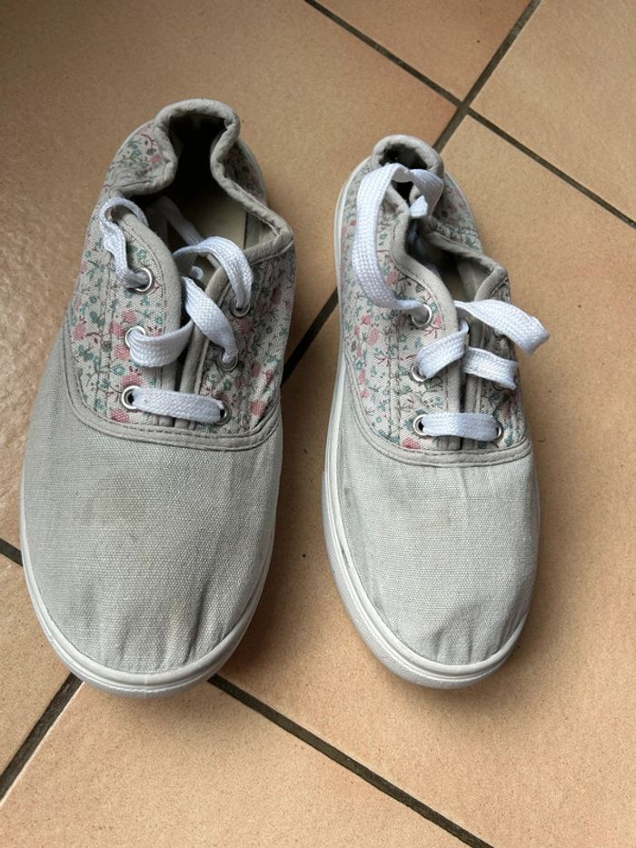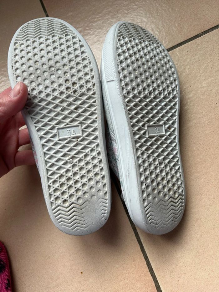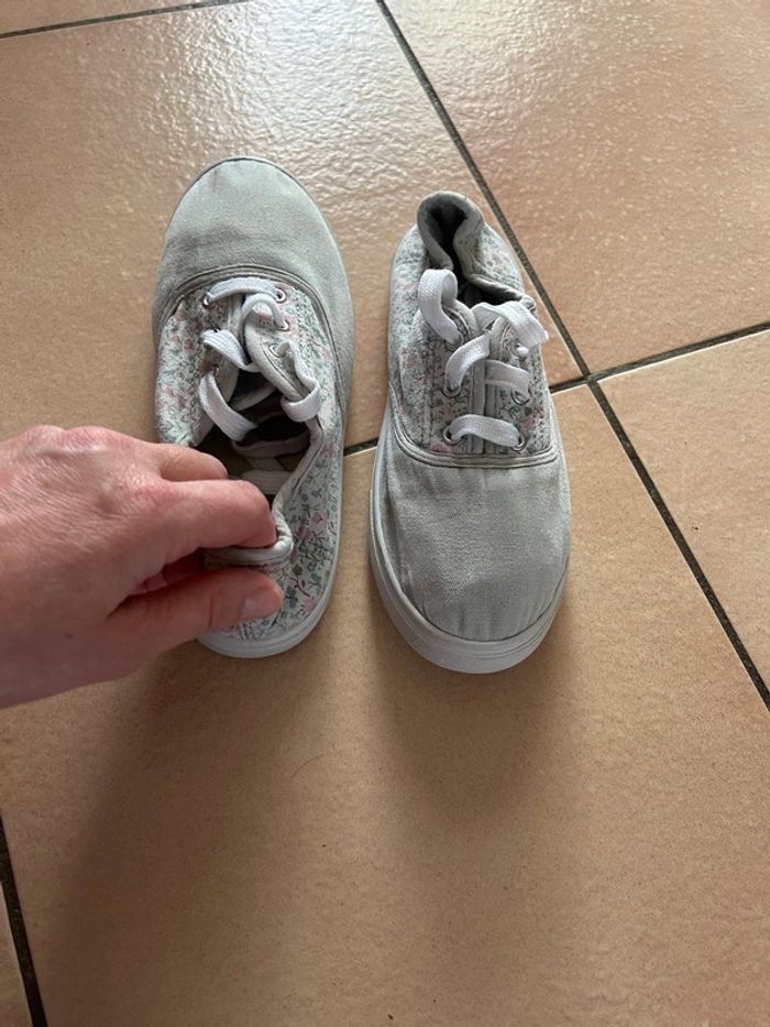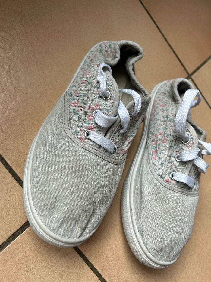 Basket / chaussure en toile taille 34 Taché sur le dessis mais en bon État n ’hésitez pas à vous abonner ,faire un tour dans mon dressing et à me demander je n’ai pas tous mis et faire des #lots prix réduit, je VENDS et je DONNe des vêtements #adultes , #maternités , #grossesse #allaitement #enfants . #bébé #prematuré #chaussures #accessoires #jouets etc etc