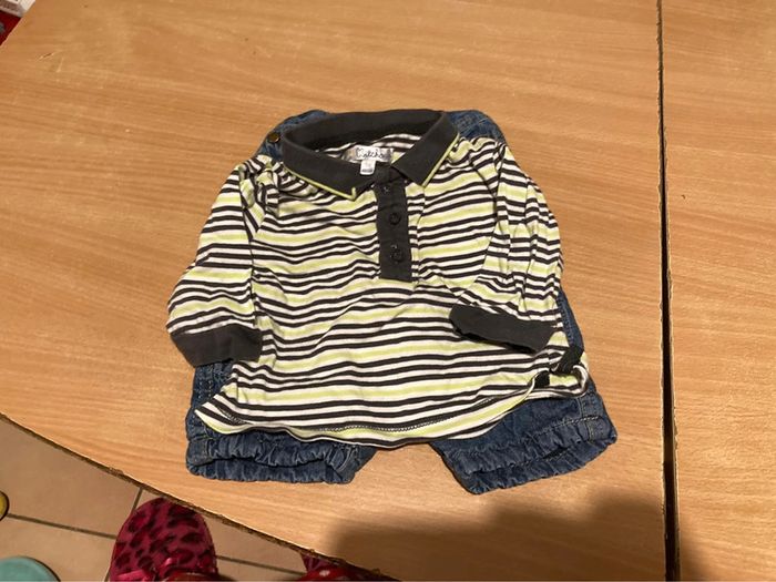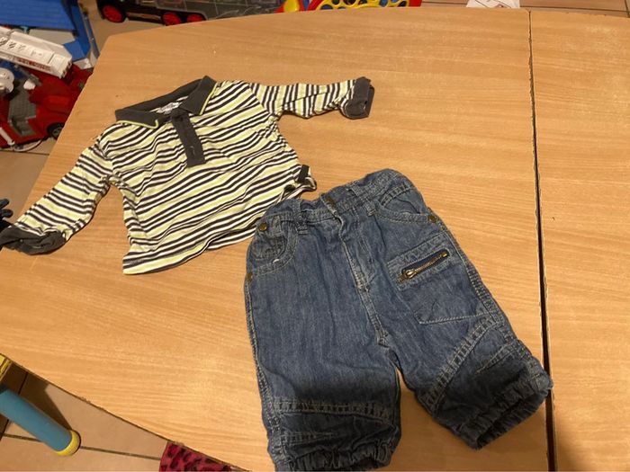 Petit ensemble taille 3 moi comprenant : -1 t-shirt ( maillot ) manches longue -1 pantalon En bon état n ’hésitez pas à vous abonner ,faire un tour dans mon dressing et à me demander je n’ai pas tous mis et faire des #lots prix réduit, je VENDS et je DONNe des vêtements #adultes , #maternités , #grossesse #allaitement #enfants . #bébé #prematuré #chaussures #accessoires #jouets etc etc