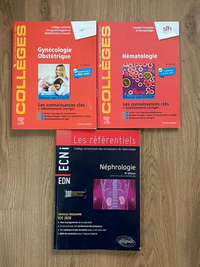 Lot de 3 livres pour ECNi / EDN : - Néphrologie - Gynécologie-obstétrique - Hématologie Pour études de médecine (concours de l’internat) Conformes à la R2C Elsevier Masson Tout neufs