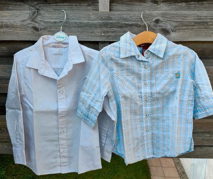 Lot de deux chemises la blanche manches longues la bleu manches courtes 2/3. Parfait état. Idéal printemps. #chemisegarçon4ans #lotchemises4ans #chemises4ansgarcon #chemiseblanche4ans #chemiseblanche4ansgarcon