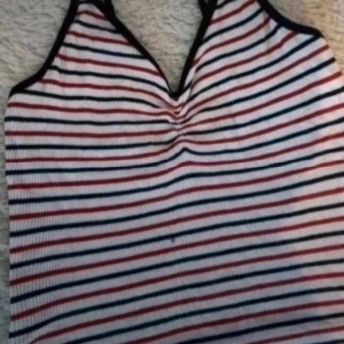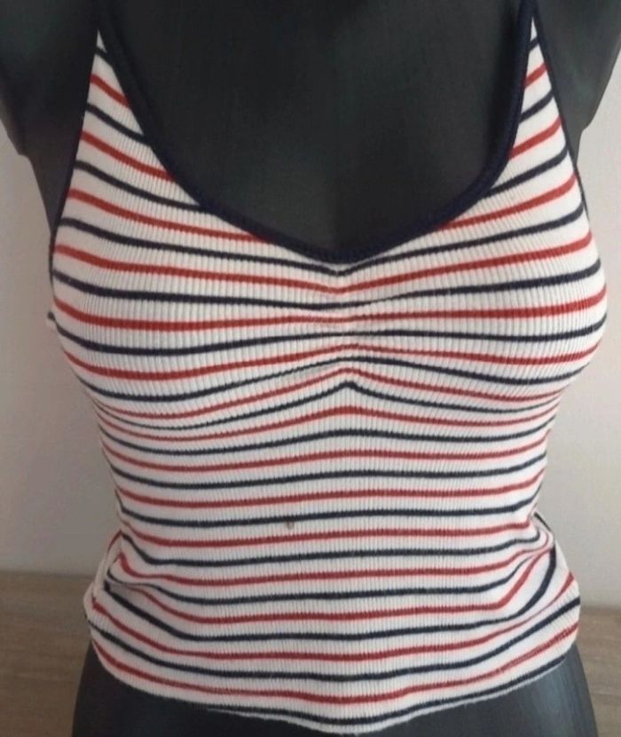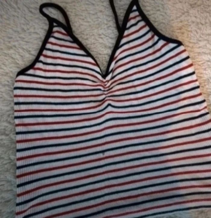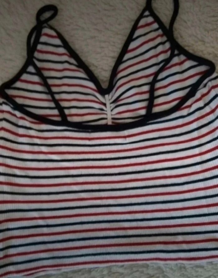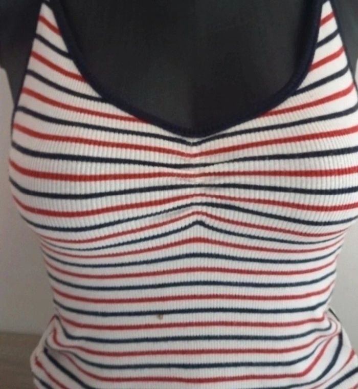 Crop top rouge blanc de chez Bershka en taille XS en bon état à l'exception de la tâche voir photos #taille34severinedl18