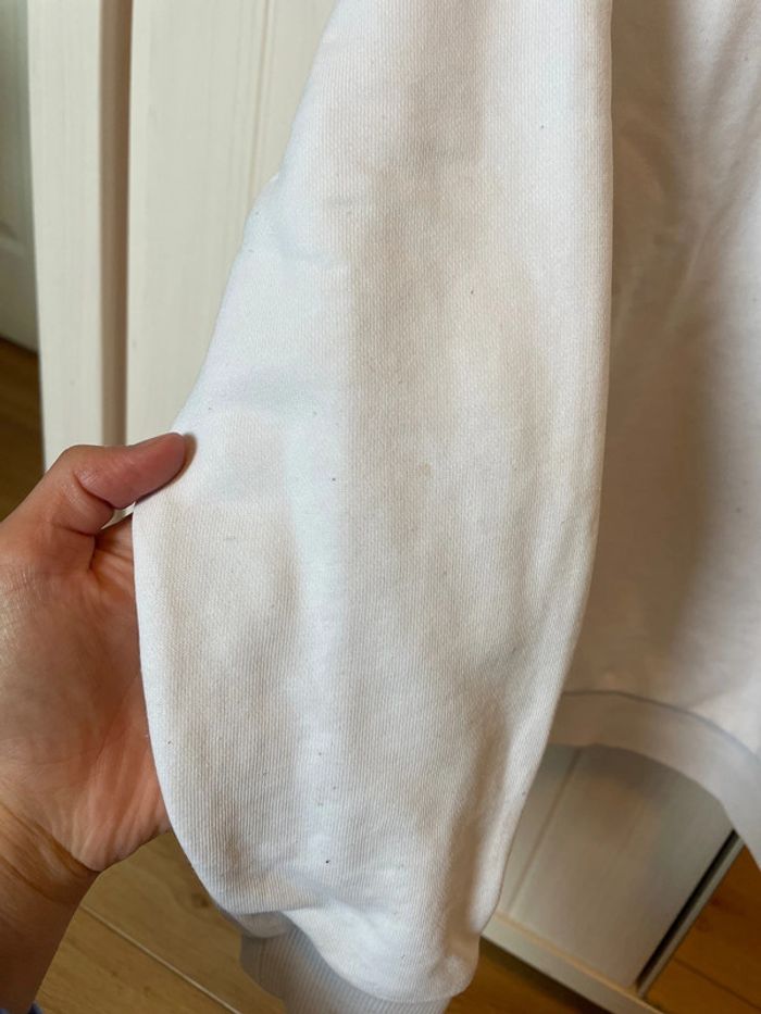 Quelques petites taches sur l’avant et sur la manche droite du pull voir sur les dernières photos.