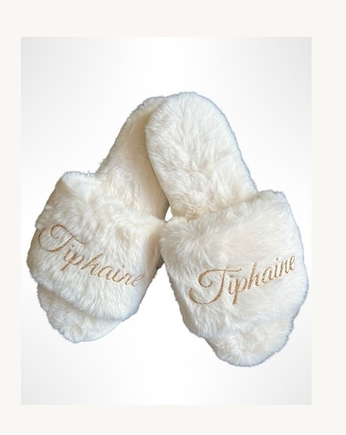 Pantoufles couleur blanc cassé Prénom floquer Taille 37 / 38 / 39