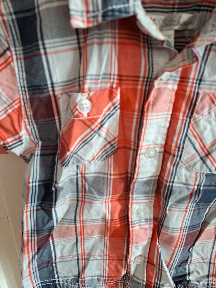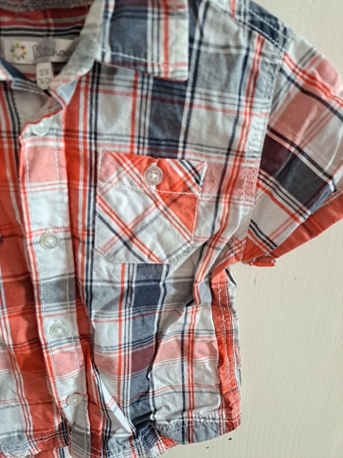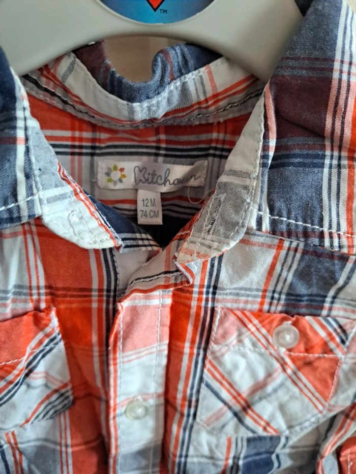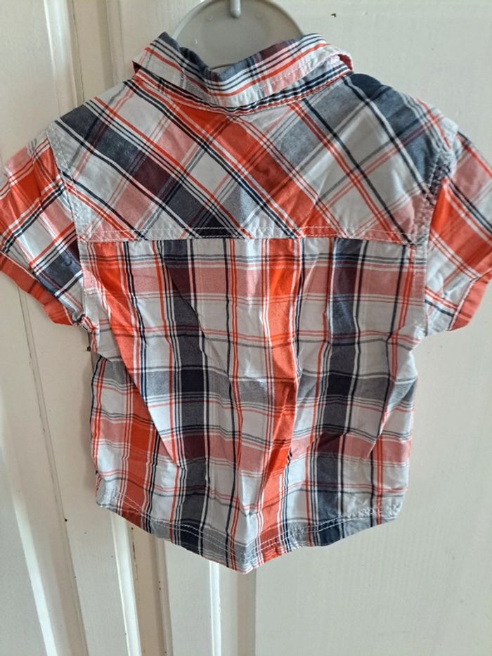 Chemise manche courte à carreaux orange et marine 12mois - photo numéro 3