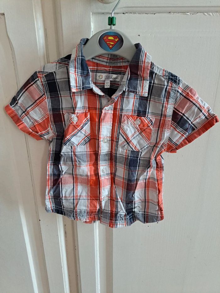 Chemise manche courte à carreaux orange et marine 12mois - photo numéro 1