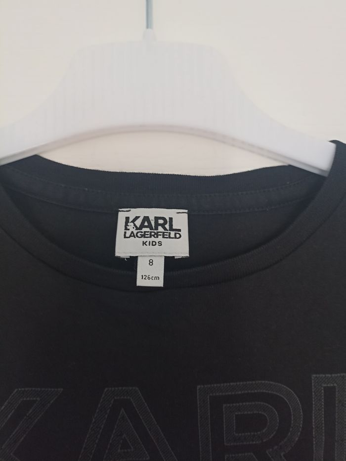 Magnifique T shirt Karl Lagerfeld Quasi pas porté Taille 8 ans Authentique même si l'étiquette à l'intérieur est pas finie puisque acheté en sortie d'usine avec cette erreur Comme neuf #karllagarfeld #tshirtmancheslongues