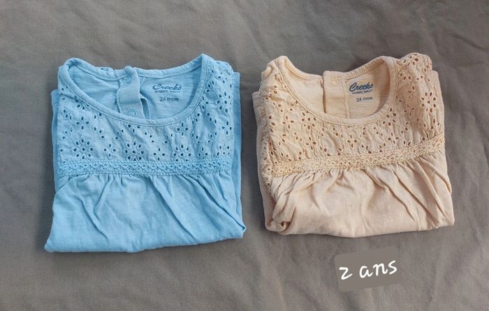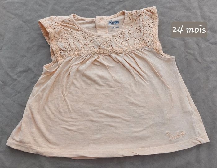 2 débardeurs macramé avec 2 boutons pressions à l arrière. Le saumon a des tâches.