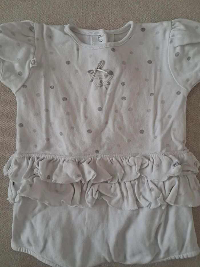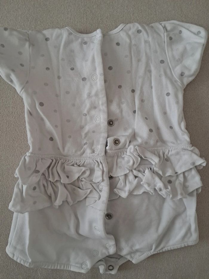 Body manches courtes, avec des volants autour de la taille. Taille 3 mois, très bon état.