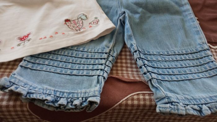 Lot de 2 Vêtements pour demoiselles 6mois 1 petit Haut blanc avec motifs colorés 1 petit jeans bleu "H&M Baby" 2 vêtements en parfait état, vendus comme sur les photos