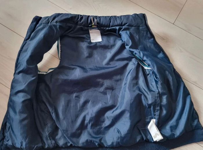 Blouson sans manche Orchestra en TBE, taille 10ans Je donne avec un blouson IKKS reversible, bien porté (poche trouée, fermeture eclair fonctionne mais il n'y a plus la tirette, recousue en haut cf photo), peu depanner pour jouer ds le jardin