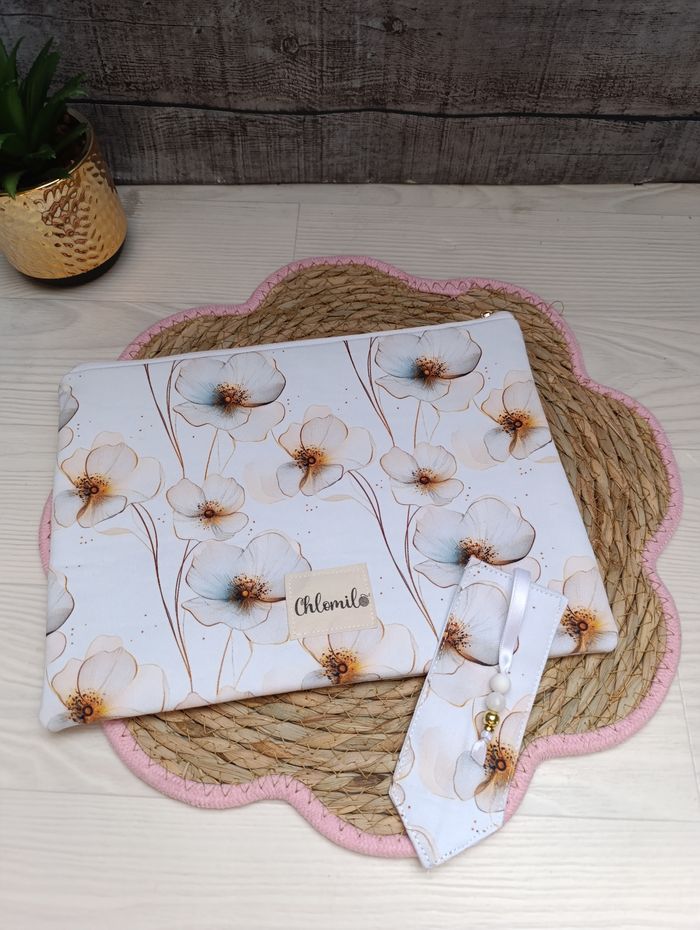 Pochette a livre Coton et une couche de ouatine pour apporte du moelleux et de la tenue Dimensions 20x28 cm Marque page assorti offert Possible d'ajouter un prénom (+2€) D'autres coloris de tissu possibles