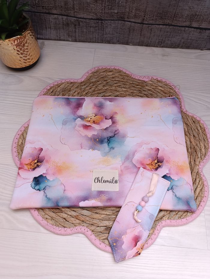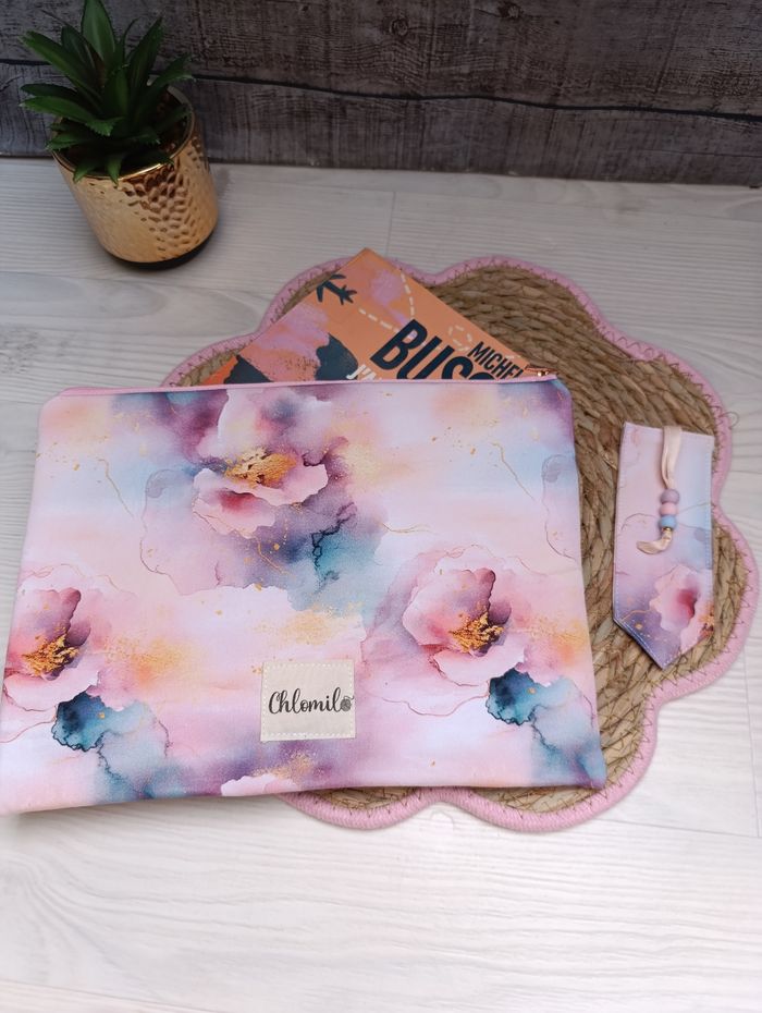 Pochette a livre Coton et une couche de ouatine pour apporte du moelleux et de la tenue Dimensions 20x28 cm Marque page assorti offert Possible d'ajouter un prénom (+2€) D'autres coloris de tissu possibles