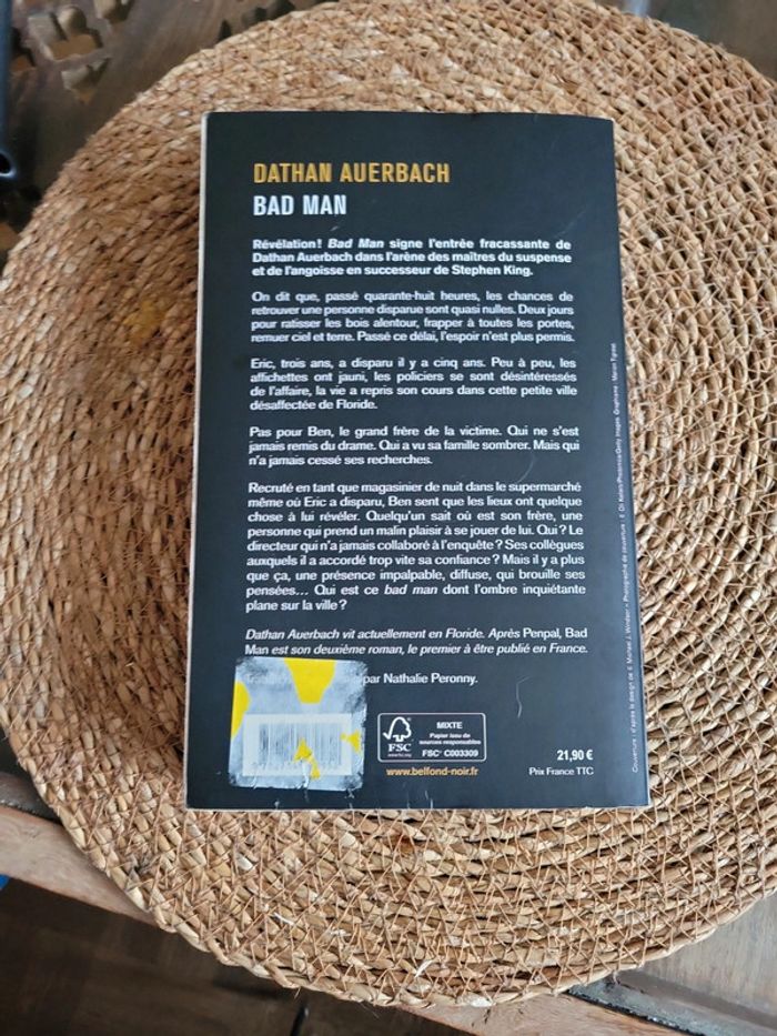 Révélation ! Bad Man signe l'entrée fracassante de Dathan Auerbach dans l'arène des maîtres du suspense et de l'angoisse en successeur de Stephen King. On dit que, passé quarante-huit heures, les chances de retrouver une personne disparue sont quasi nulles. ... Neuf, sans étiquette (je n ai pas reussi à enlever la totalité de l étiquette...) Envoi sous 24h_48h