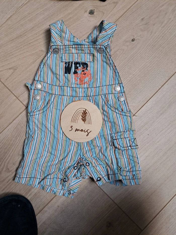 Salopette d'été à rayures, Joy et fun, taille 3 mois. Tbe