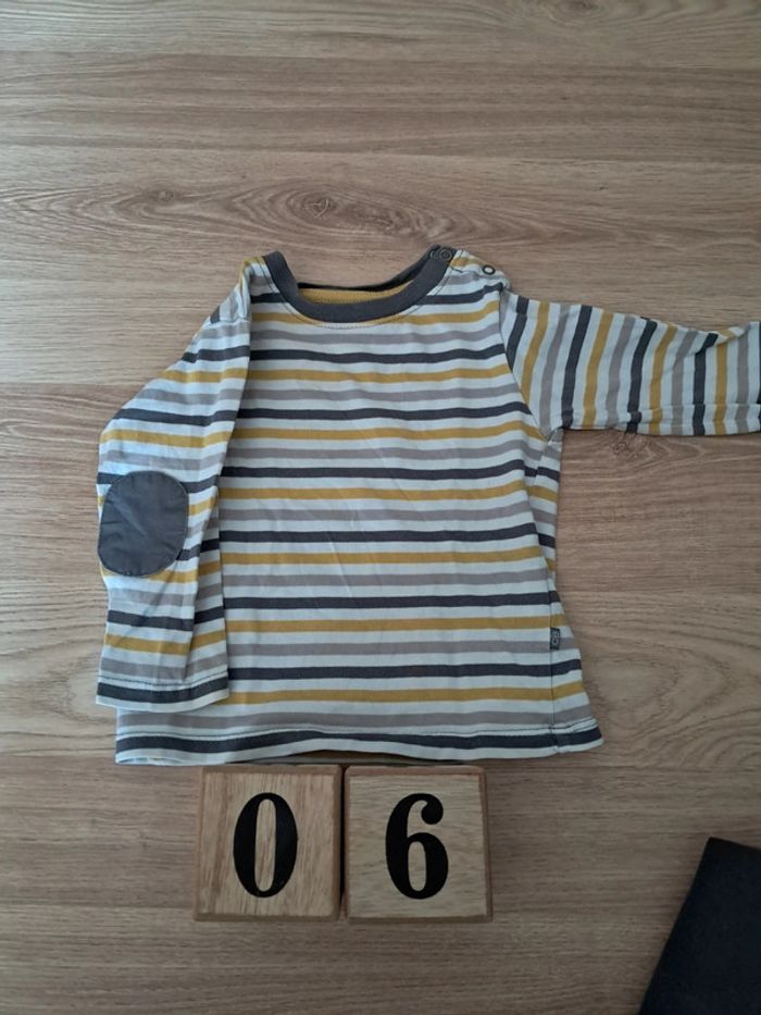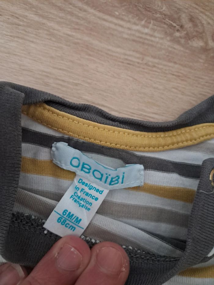 Tee-shirt manches longues à rayures Obaïbi. 6 mois. Excellent état.