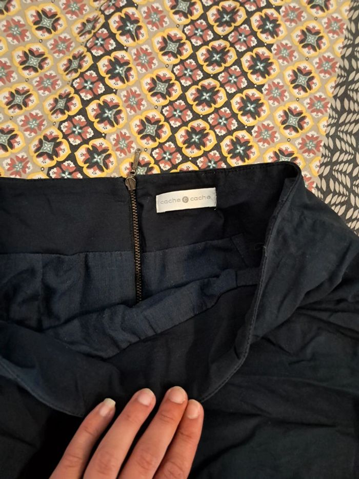 Jupe boule bleu marine avec nœud à l'avant. Cache Cache taille 36. Très légère.