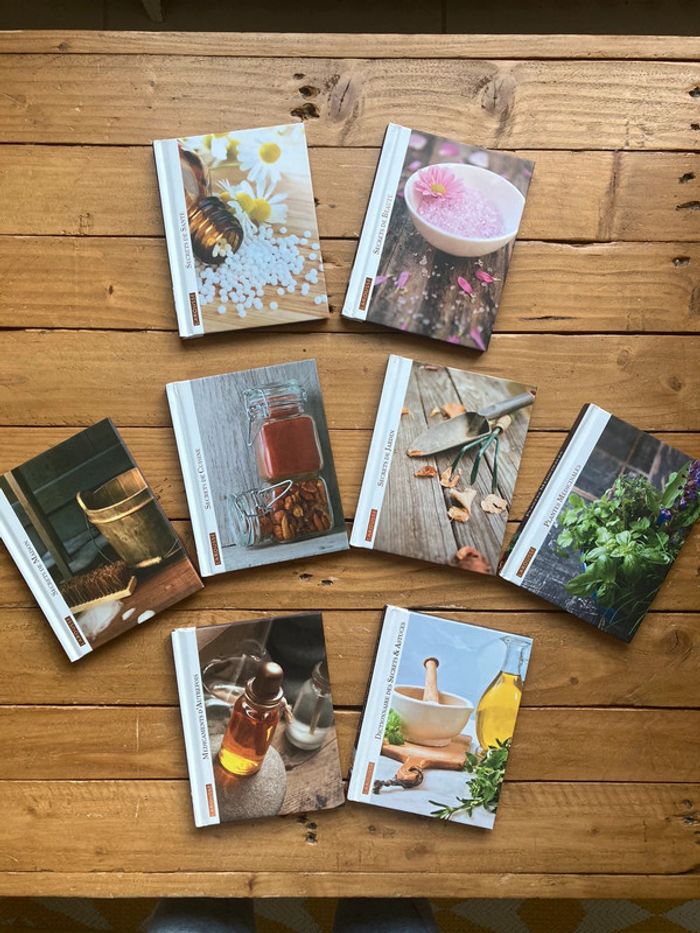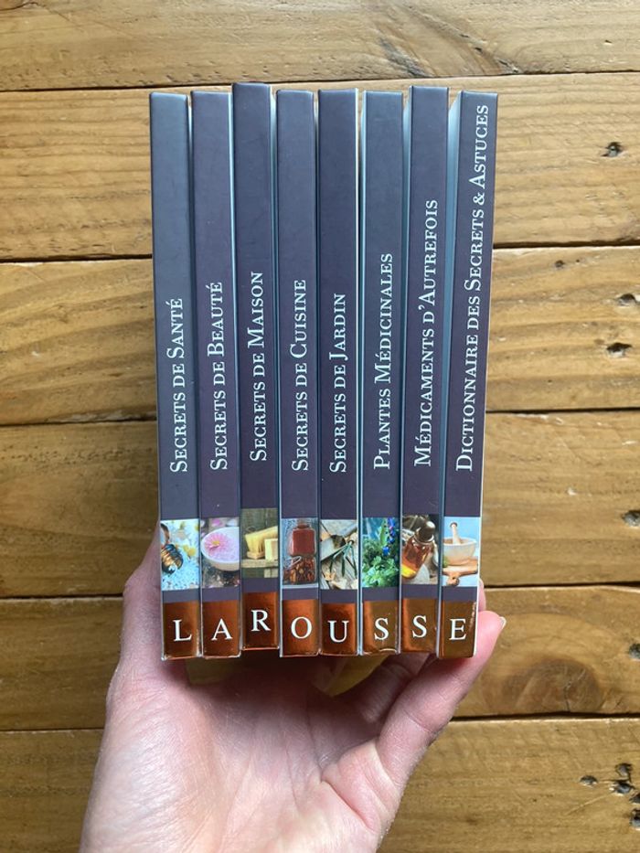 Collection Larousse de livres «  au naturel » 8 livres Larousse Secrets de santé, secret de beauté, secret de maison, secrets de cuisine, secrets de jardin, plantes médicinales, médicaments d’autrefois et dictionnaire des secrets et astuces Très bon état : quelques traces d’usure sur les couvertures et un trait de crayons sur une tranche #kryptana_livres