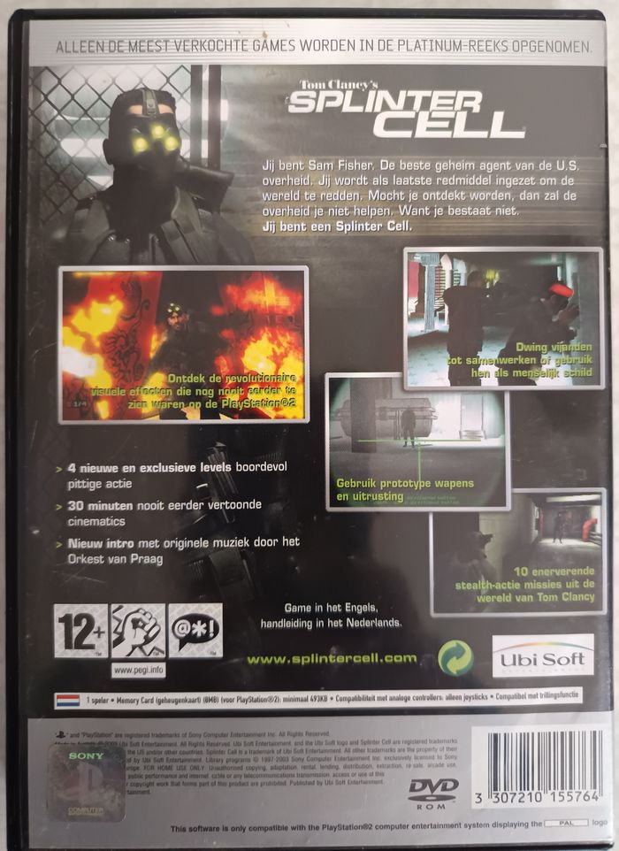 Jeu Playstation 2 - Tom Clancy's Splinter Cell (Platinum) - PS2 - CD version NL Jeu en bon état général