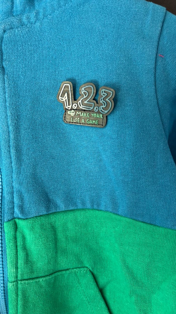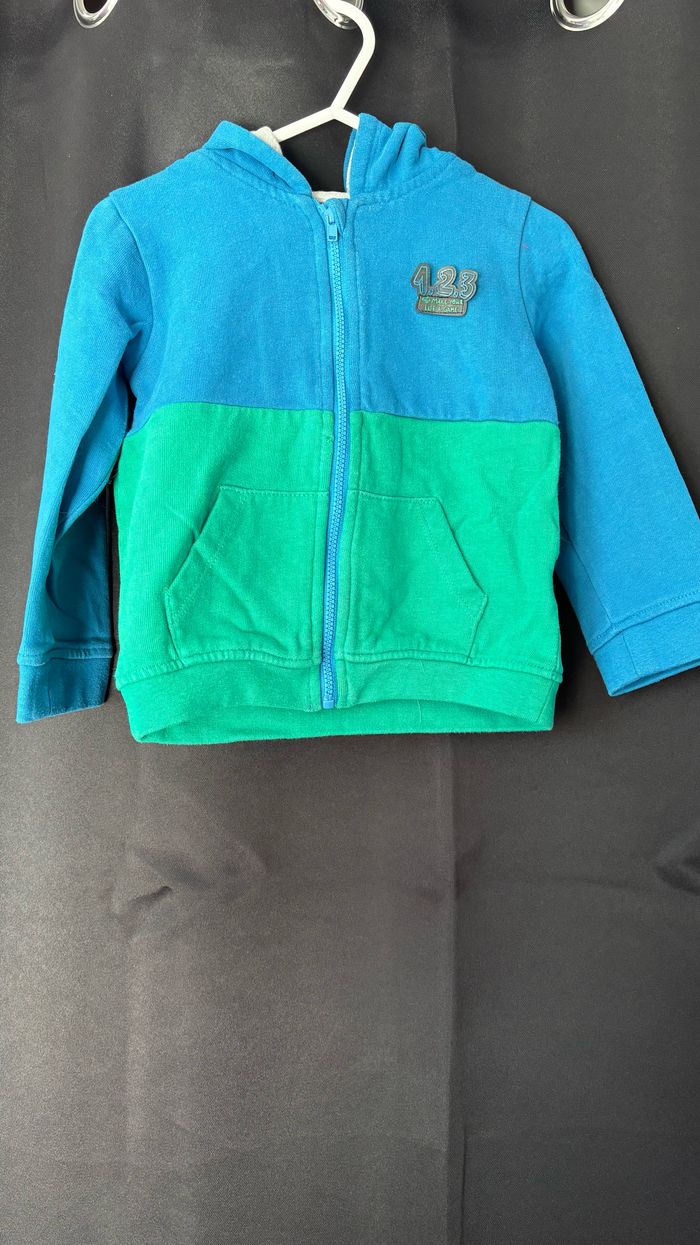 Bicolore vert et bleu avec capuche et fermeture éclair