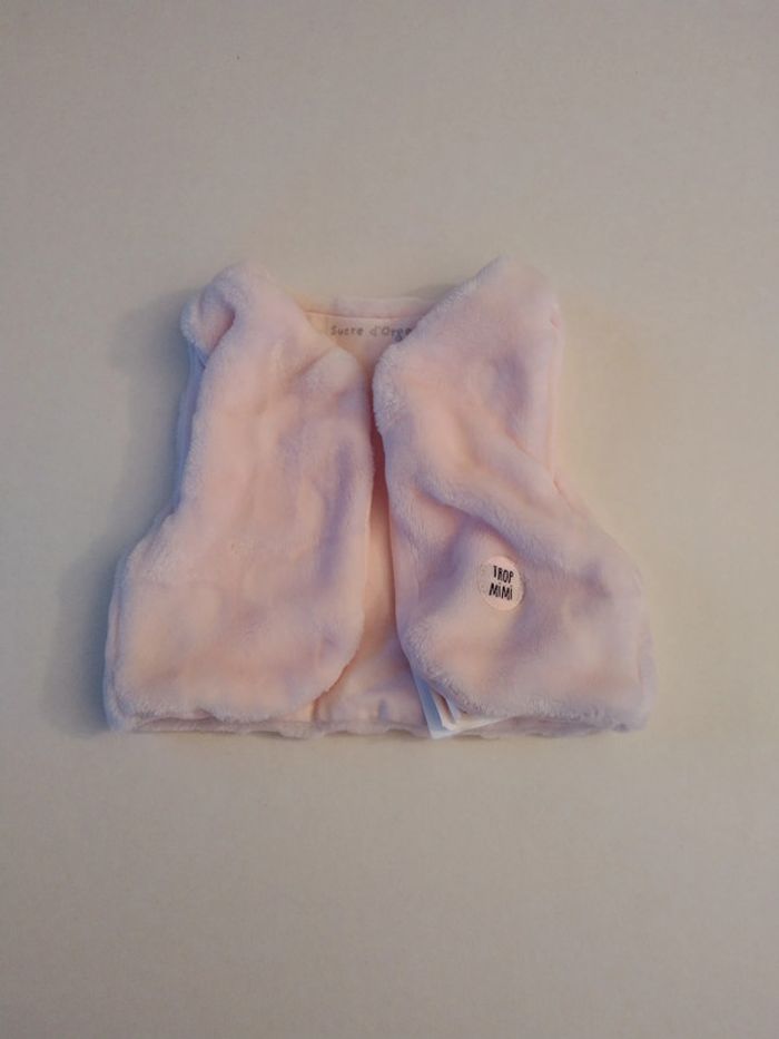 ensemble sucre d'orge + gilet fourrure fille 1 mois - photo numéro 2