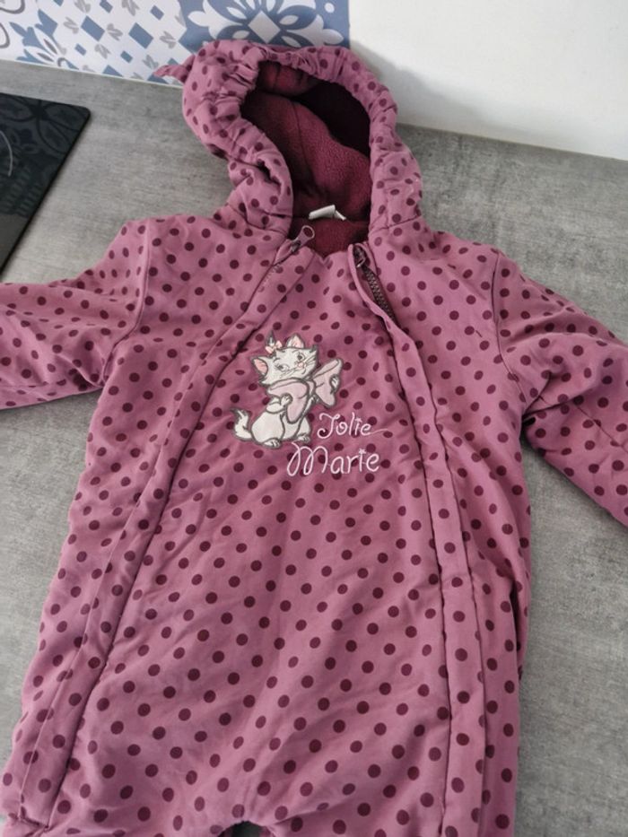 Combinaison pilote taille 18 mois marie des aristochats je n'est juste plus les pieds. Se ferme parfaitement.