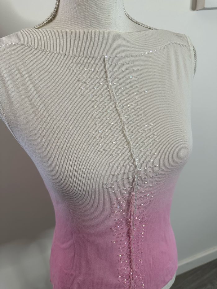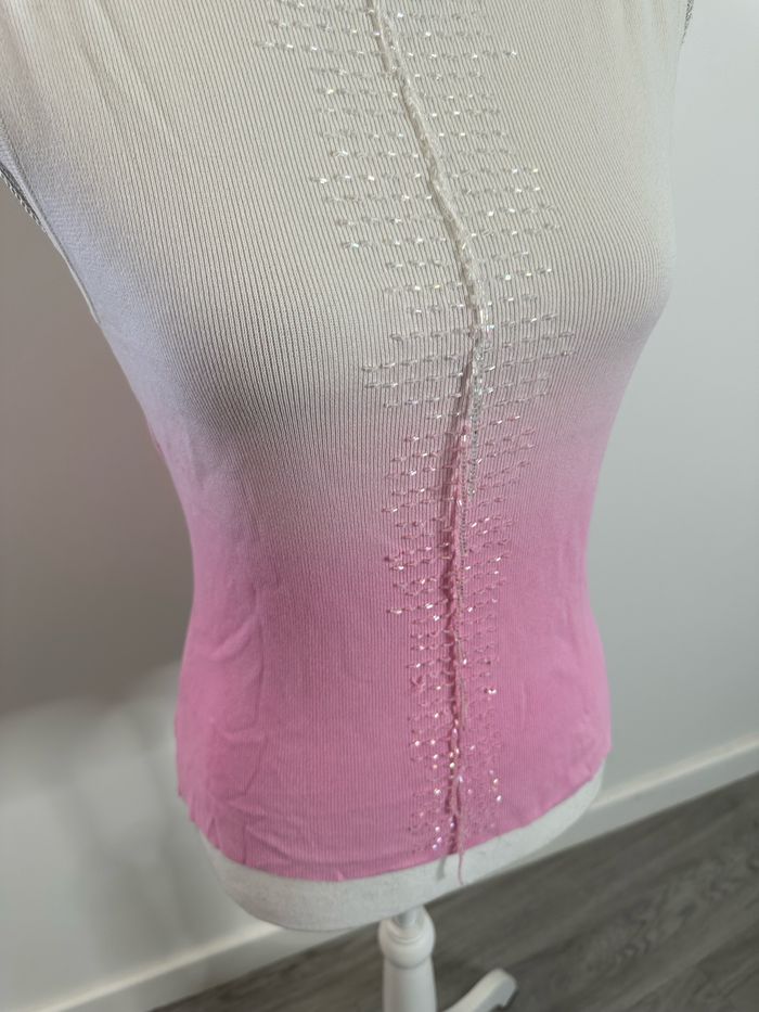 Débardeur tie and dye perles blanc et rose Y2K T38 M - photo numéro 3