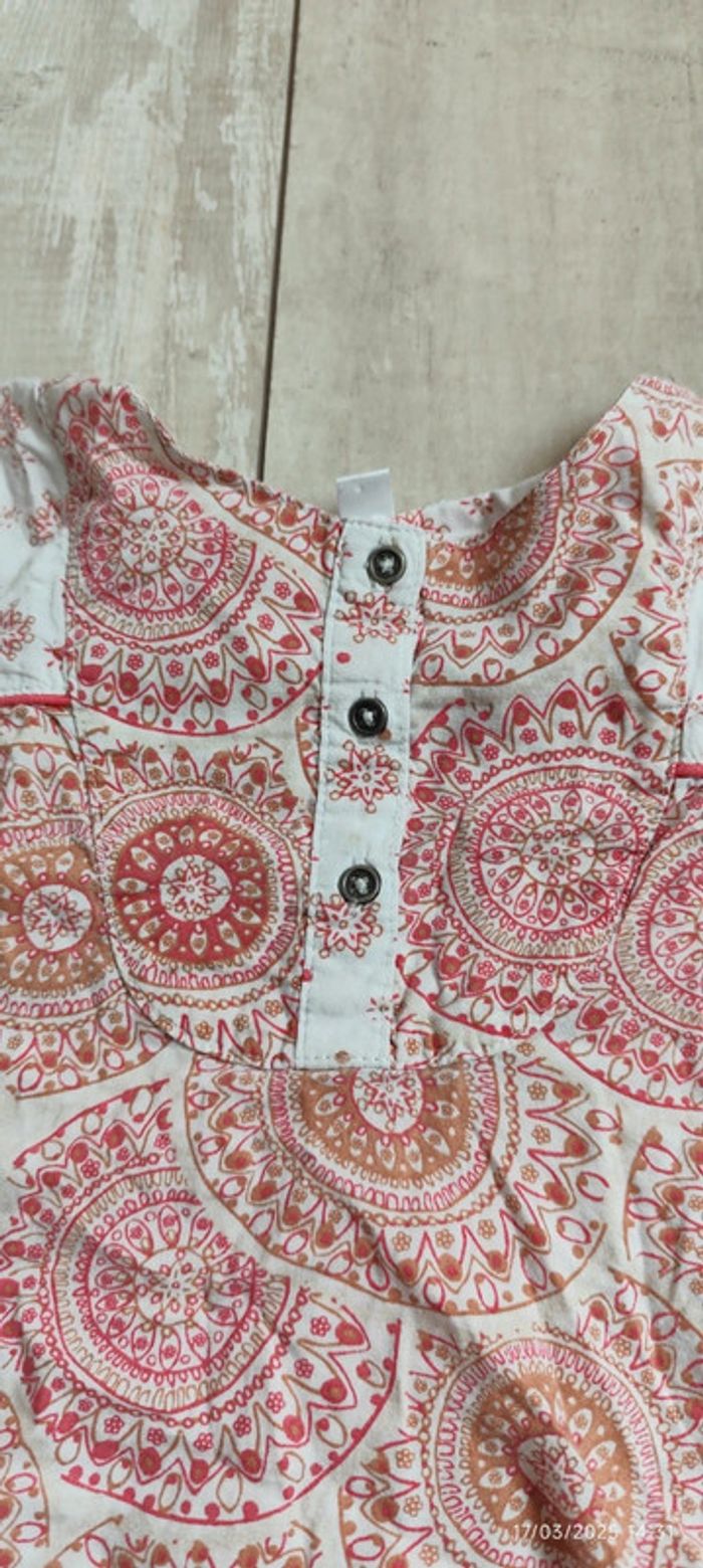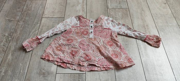 Je vends ce t-shirt à manches longues de couleur blanche et rouge avec des motifs type mandala, de la marque Vertbaudet et en taille 4 ans. #Estelle2150_enfant_4ans