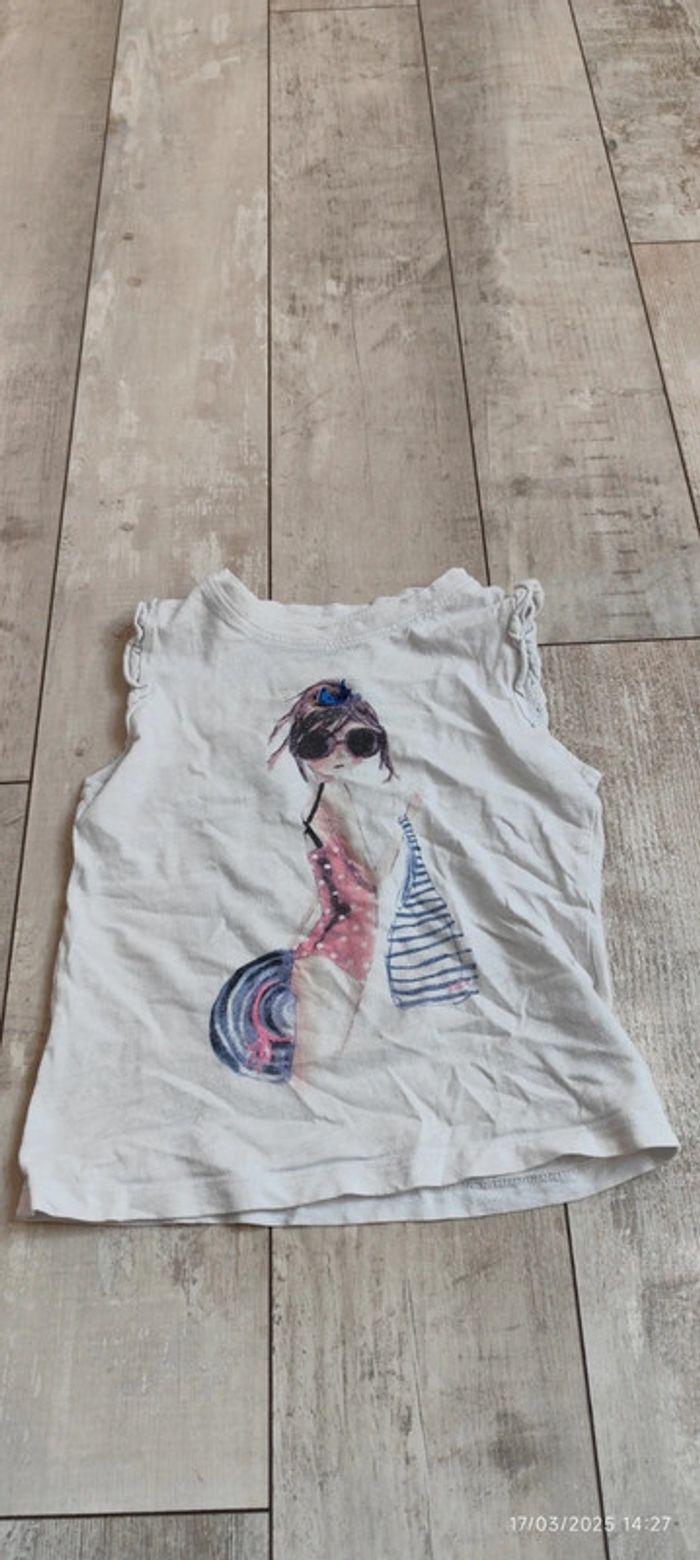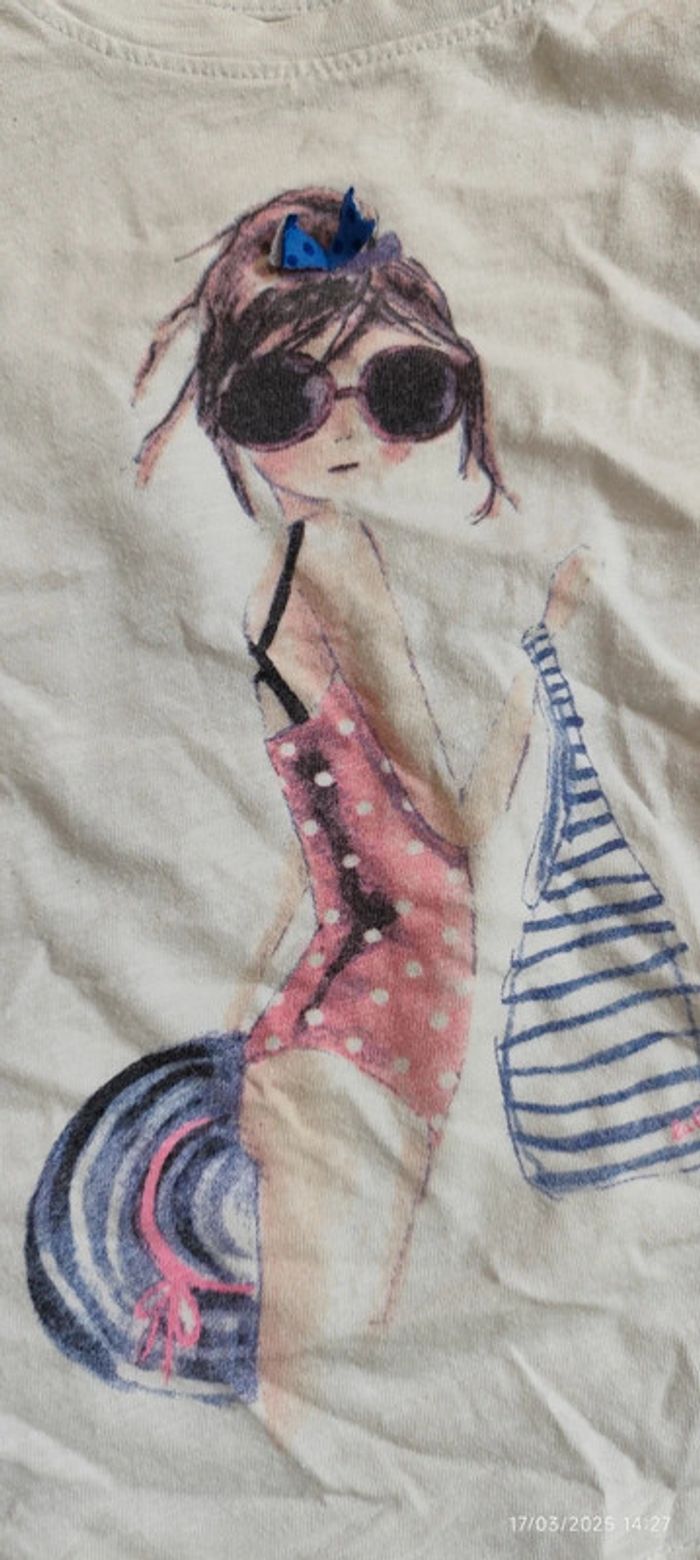 Je vends se débardeur de couleur blanche avec une petite fille en maillot de bain, de la marque la Compagnie des petits et en taille 4 ans. #Estelle2150_enfant_4ans