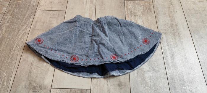 Je vends cette jupe de forme patineuse, de couleur bleu avec des fleurs sur le bas de la jupe, de la marque Orchestra et en taille 4 ans. #Estelle2150_enfant_4ans