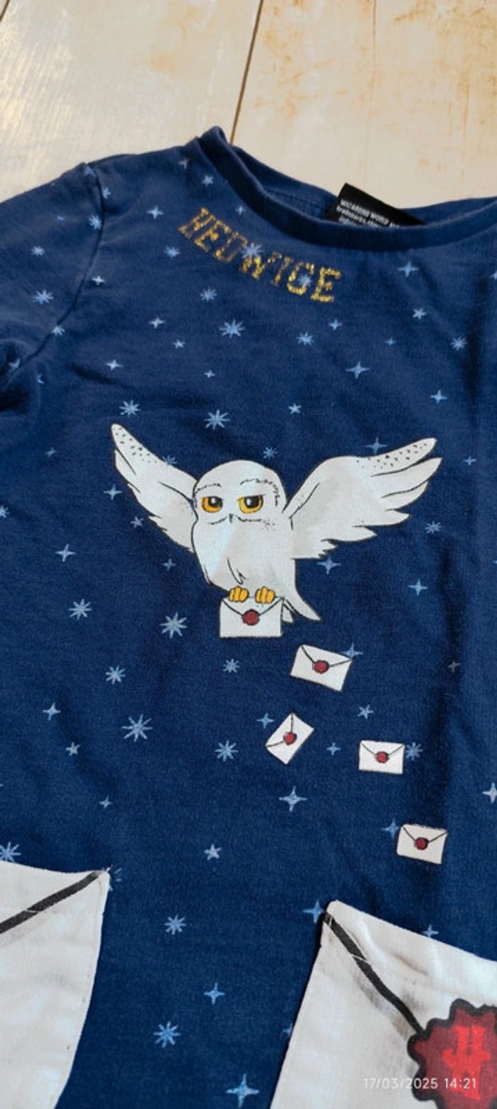 Je vends cette robe de couleur bleu foncé à l'effigie de Hedwige, de la marque Harry Potter et un taille 4 ans. L'écriture « Hedwige » est légèrement effacé (cf. Photo 2). #Estelle2150_enfant_4ans