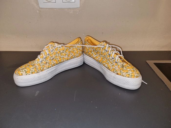 Baskets compensées moutarde fleuries - photo numéro 1