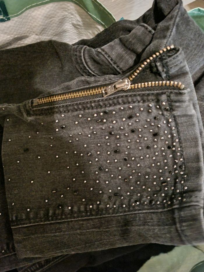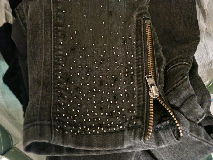Jeans noir avec déco 3d en bas + tirette - photo numéro 3