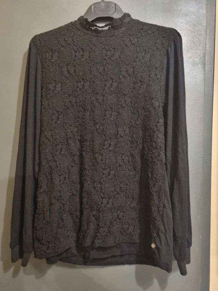 Blouse noire dentelle avec longues manches - photo numéro 1