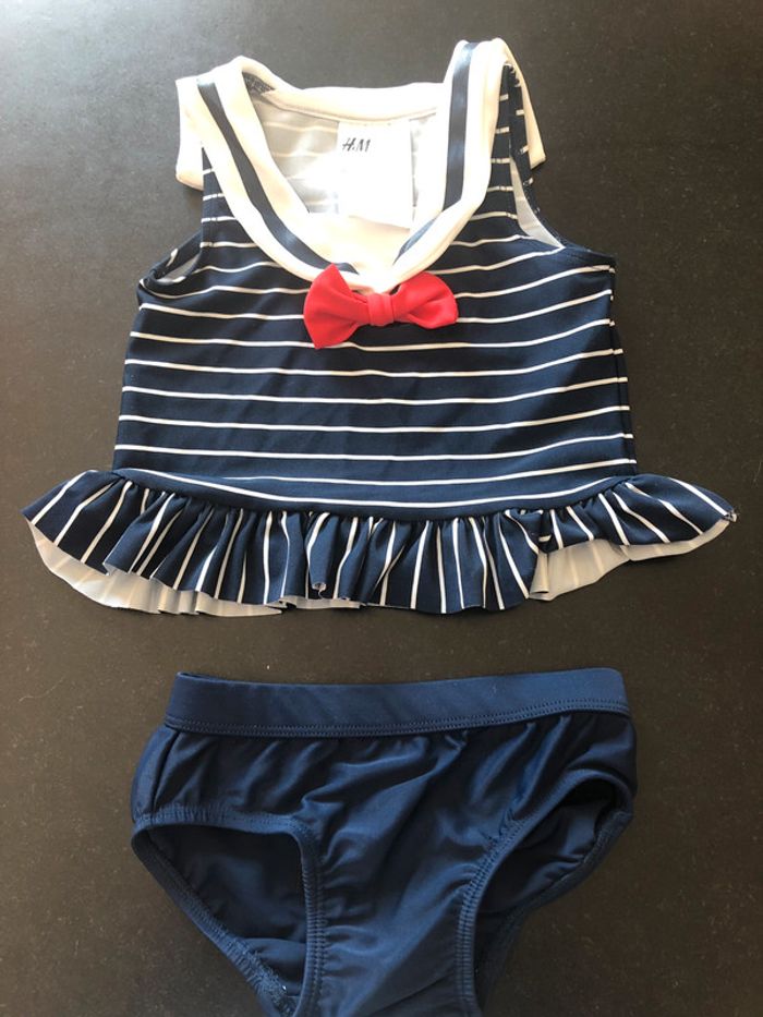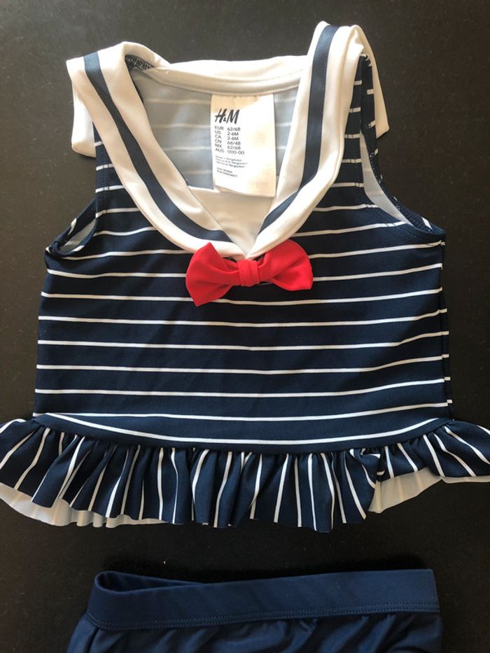 porté 1 foi très joli maillot de bain - Petit top et slip de bain esprit marin taille 62/66 cm soit 6 mois