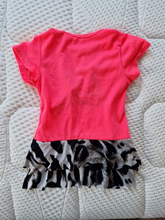 Robe manches courtes avec dessus rose avec inscription j'aime mon papa et ma maman. Le bas est en motif léopard. #sarahzajacfille6m #szterza