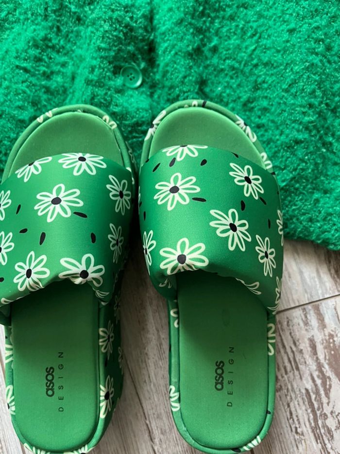 Chaussure Asos verte à fleurs - photo numéro 1
