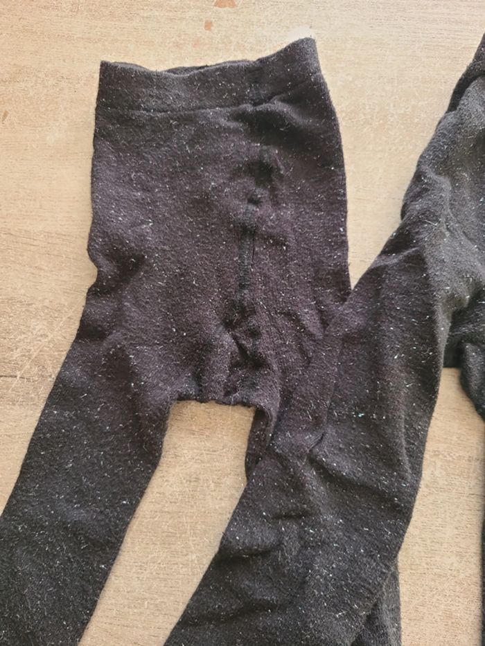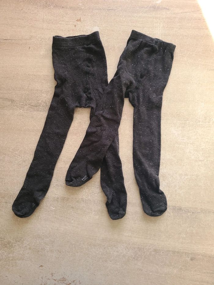 2 collants noirs, chauds, avec fils pailletés. Parfaits pour les fêtes de fin d'année. Portés une fois seulement.
