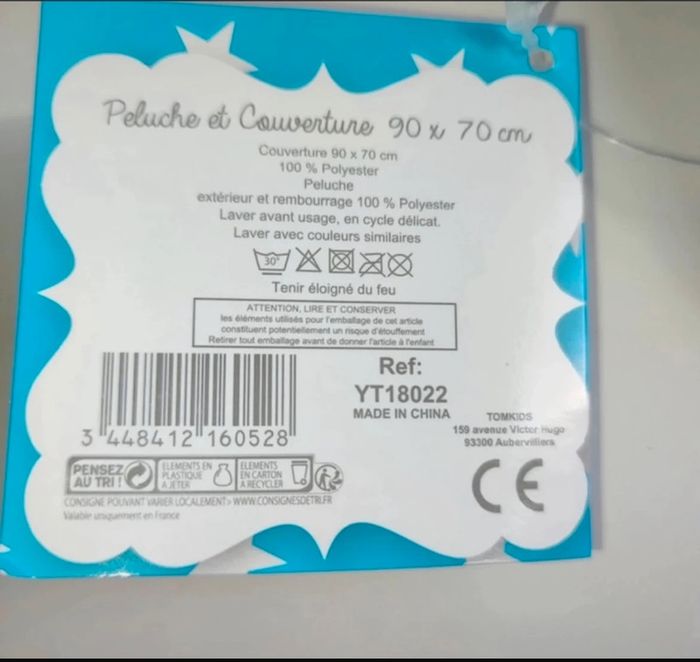 🤍neuf, idéal cadeau 🧵100% polyester, très doux au toucher et léger 📏environ 30 cm pour la peluche. 90x70 cm pour la couverture 🌸 lot possible avec d’autres articles 📬envoi rapide et soigné